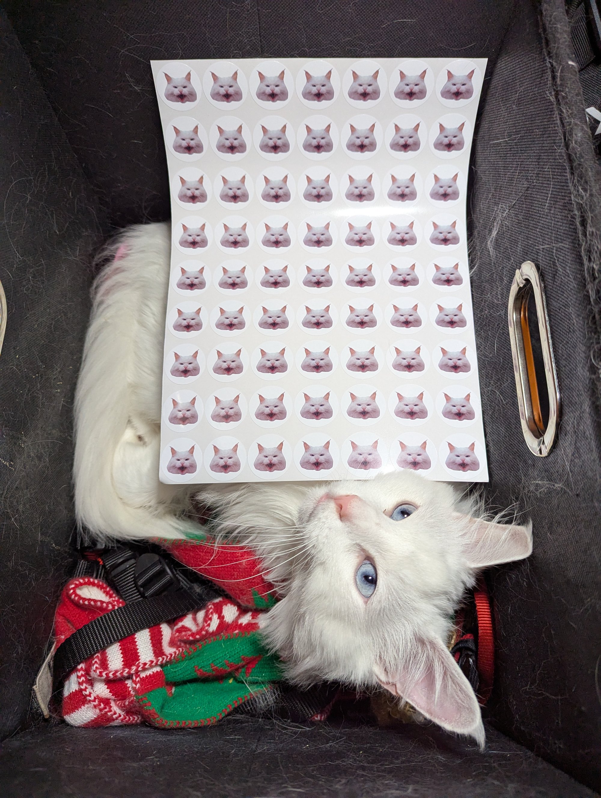 Sigrid's iconic hiss captured on a sticker. This is a sheet of sixty three 30mm stickers. Your bicycle stem cap is probably 31.8mm... a perfect fit!