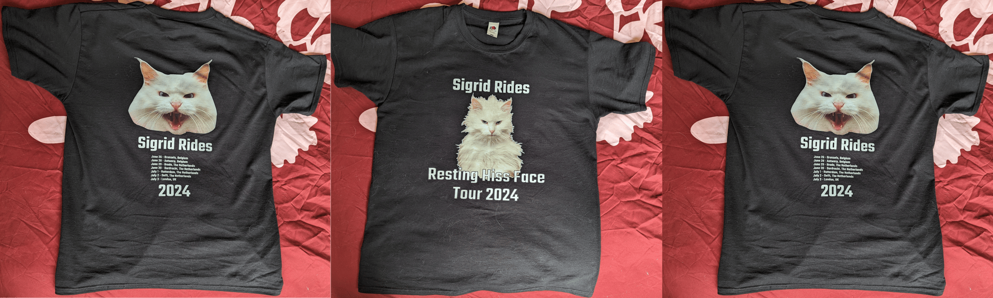 Help support our tour through Belgium and Holland by getting your own tour t-shirt! Cat fur not included.